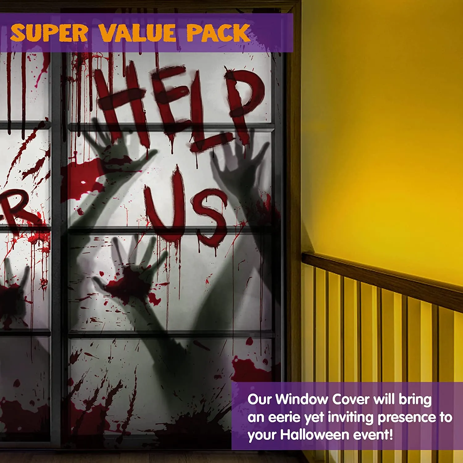 Joyin 2Pcs Skeleton Door Cover+Bloody Window Stickers – Halloween Decorations