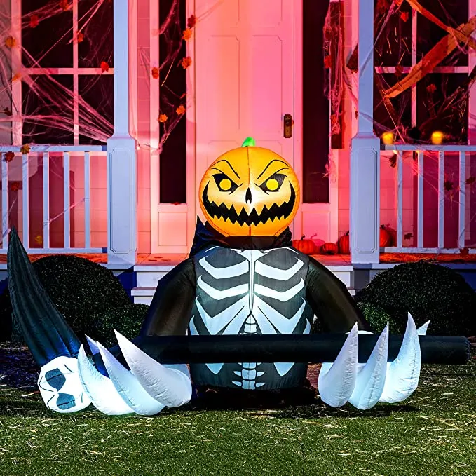 Joiedomi 4ft Halloween Inflatable Ground Breaker Pumpkin Reaper – Halloween Decorations