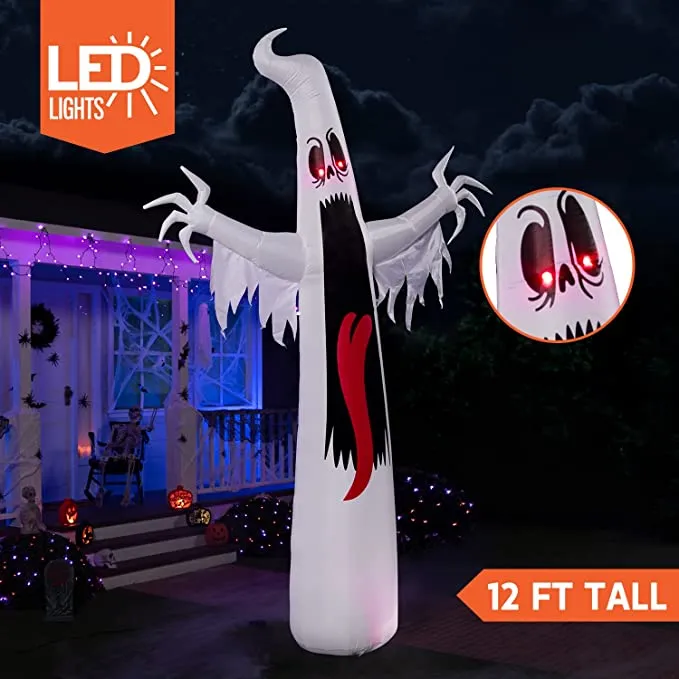 Joiedomi 12ft Inflatable Towering Ghost with LEDs Decoration – Halloween Decorations