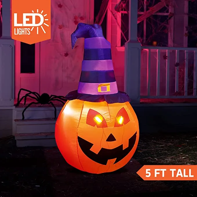 Joiedomi 5ft Inflatable LED Pumpkin with Witch Hat – Halloween Decorations