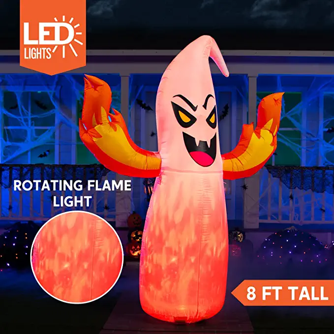 Joiedomi 6ft Tall Halloween Cute Wizard Ghost Inflatable with Flaming Light – Halloween Decorations