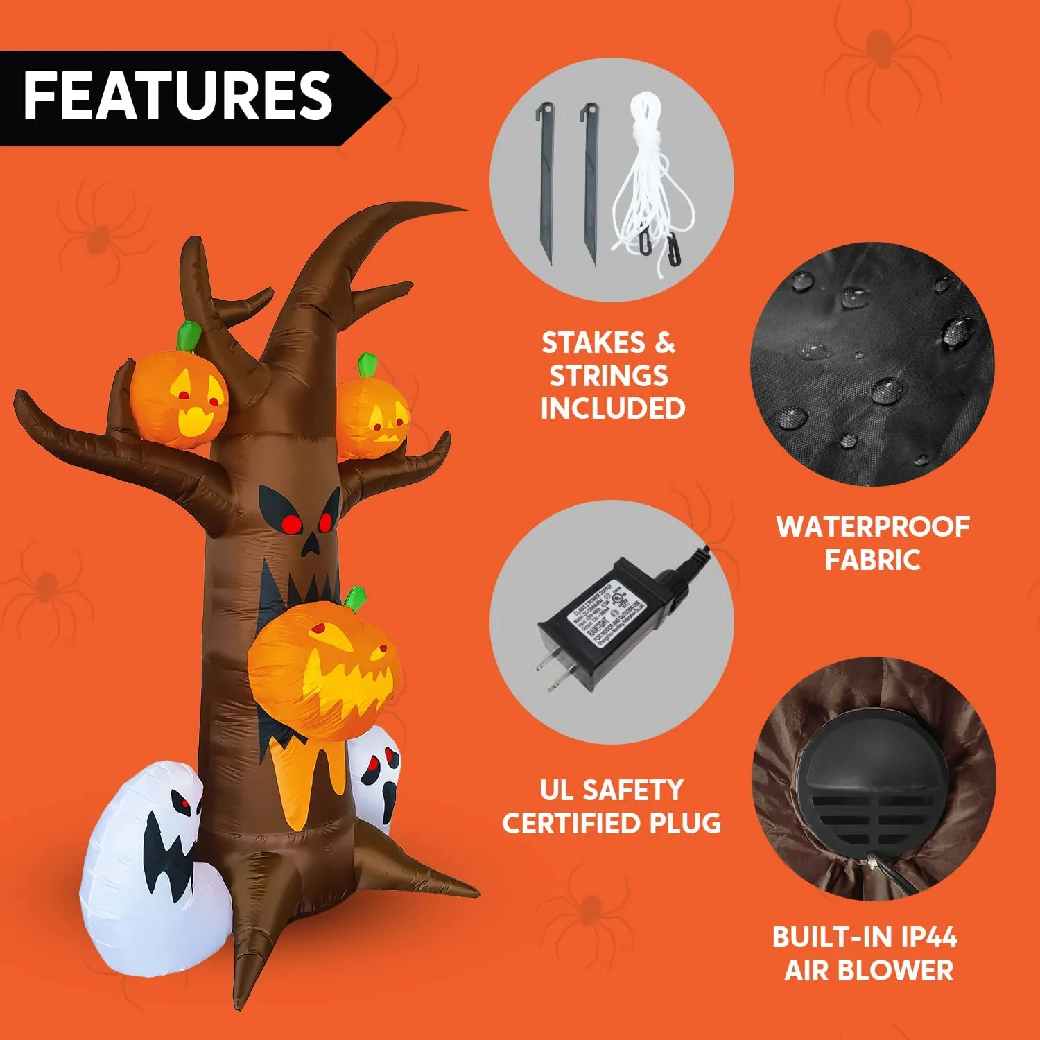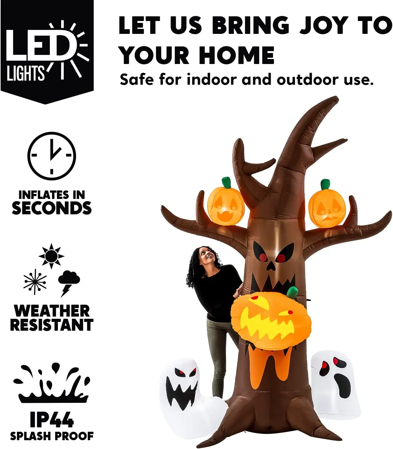- 10 feet tall scary tree bites pumpkin inflatable comes with extended cords, ground stakes, fastened ropes, built-in sandbags, and a plug with ul certification.