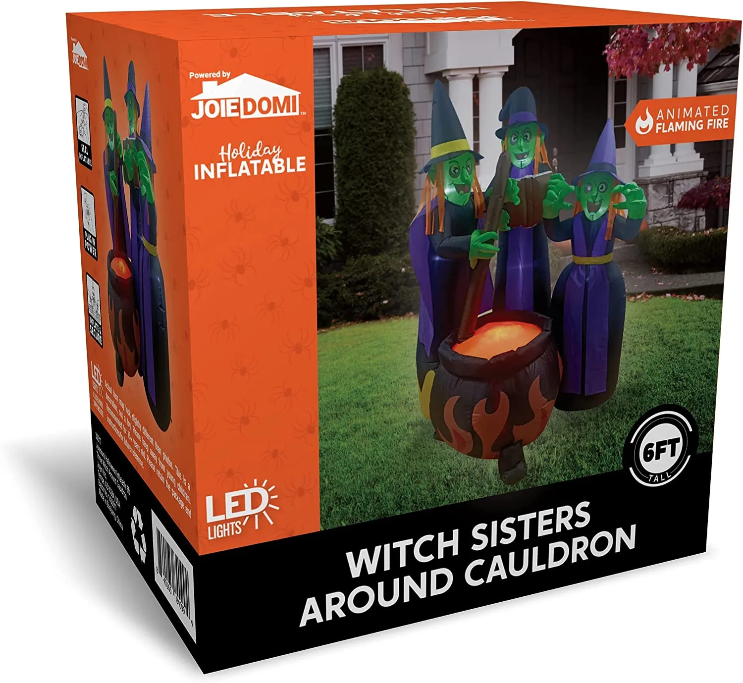 You’ll have a trio of spellcasters ready to serve up the treats with these 6 feet tall electric inflatable witch and cauldron Halloween decorations. The kids will be in the proper holiday atmosphere and know exactly what to do next thanks to the cauldron’s instructions. You’re surely familiar with the cauldron’s magic words. But this time you won’t have to recite any of them. To give these witches life and add some fantastical fun to your Halloween blow ups decorations, simply flip a switch. This year, surpass the neighbors by creating the ideal holiday yard display to frighten all the trick-or-treaters in the traditional Halloween style.