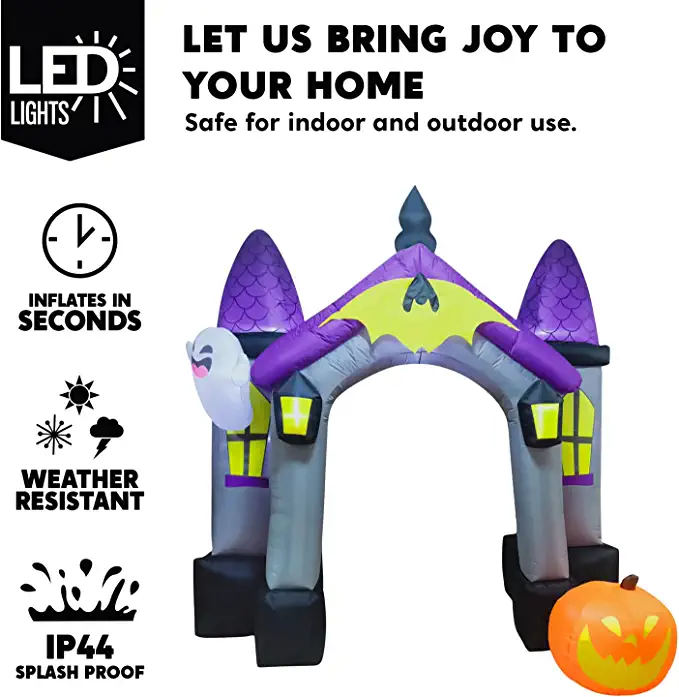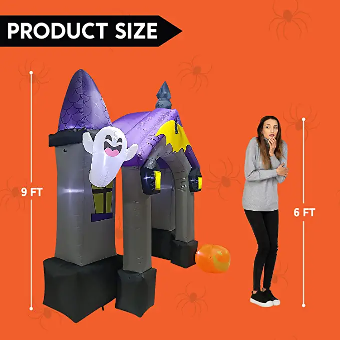 The 9-foot tall, extended cables, ground anchors, secured ropes, and built-in sandbags of this enormous Haunted House Inflatable are all included. This Halloween blowup also has powerful LED lights incorporated directly into it. Turn on the lights in the evening to attract neighbors and visitors. Due to its lightweight construction, the Halloween inflatable haunted home is simple to set up and take down if necessary. Additionally, it is resistant to the elements, so you won’t have to worry about snow or rain destroying your decorations. For those who want a very prominent Halloween display in their front yard, it’s spooky and good fun. Trick-or-treaters can enjoy a Halloween light show while also catching a glimpse of a ghostly figure emerging from the gravestone. Halloween night festivities, a costume party, decorations for haunted houses, and more! Our top aim is to give our consumers an experience that is completely satisfactory. Now available! Purchase Yours Now While Supplies Last!