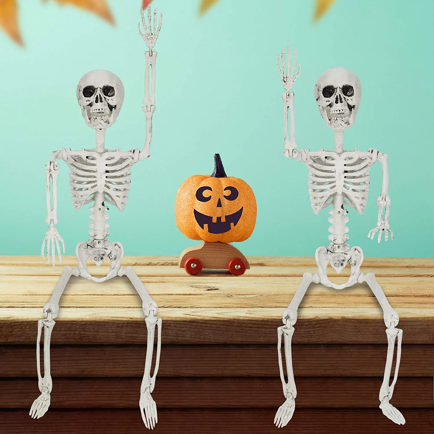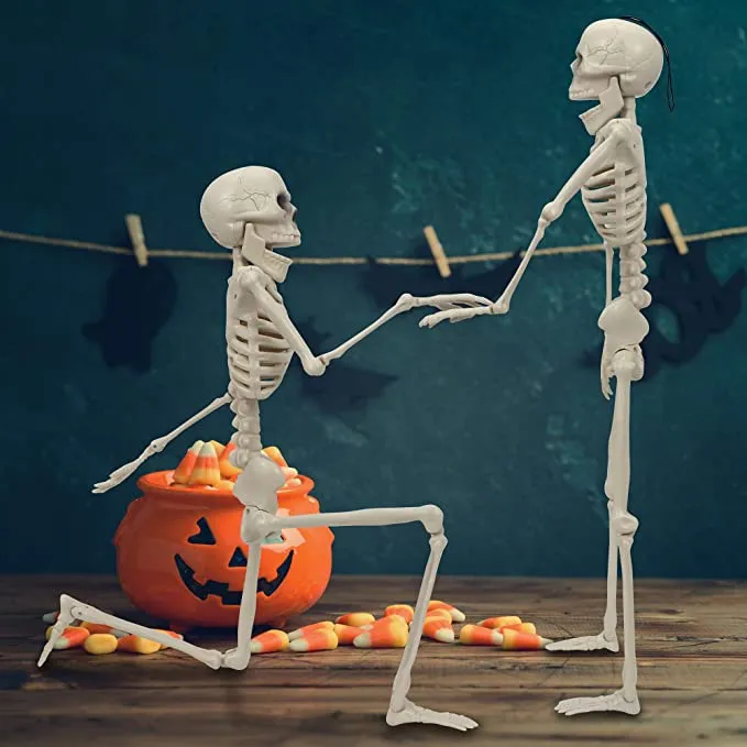 Add the finishing touches to your Halloween decorations this year with these hauntingly good Skeleton Decorations. With 2 pieces included, your home will be ready to scare in no time! Each skeleton measure 24″ tall and will give your haunted house that classic Halloween touches everyone loves. The posable joints make them moveable and versatile, allowing you to set them up in endless ways to give your haunted house a classic Halloween touch everyone will love! Meet US toy standards. Safety test approved. These realistic skeletons are designed to look as though they just jumped right out of a graveyard and will give any full-sized (or smaller) skeleton-themed haunted house and Halloween party the perfect touch of dreary flair. This skeleton will make your home more beautiful and lifelike. Painting is so beautiful, like a real person. It is simple to assemble and disassemble. Perfect for events like weddings, haunted homes, and parties where a little eerie impact is desired.