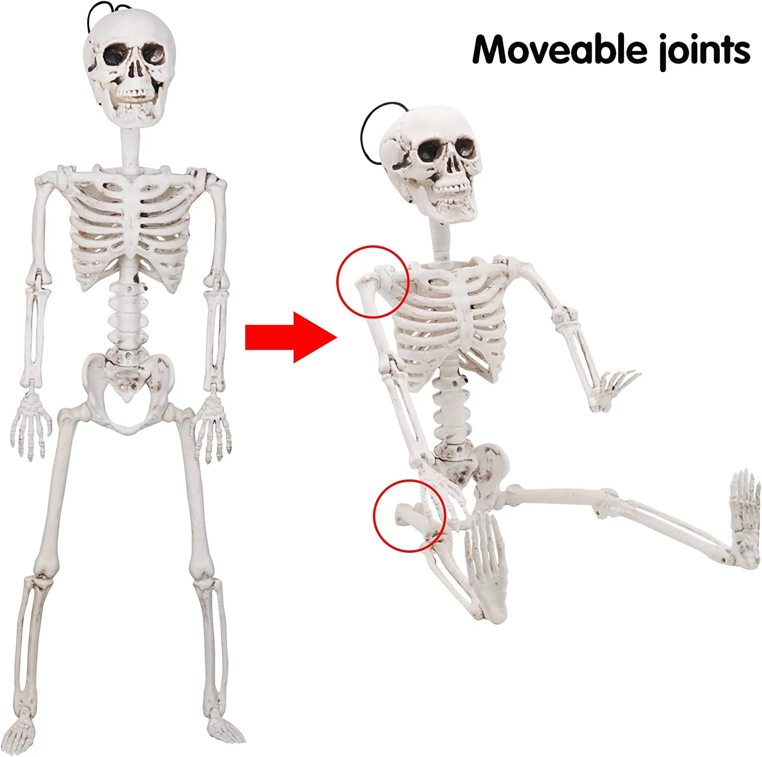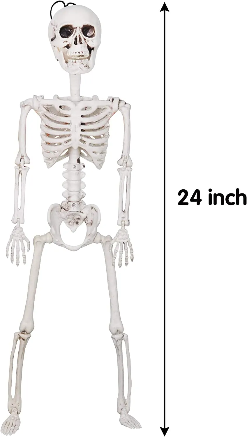 • Our Halloween Decor Skeleton Includes two 24″ Tall Posable Limbs with Knees Full Body Skeletons.