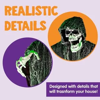 • Size – The Black grim reaper measures 47 inches/ 120cm large while the other two(Green & Orange) measures 35 inches/ 90 cm large, which make it easy to be noticed, provide this real scary feeling on the outdoor lawn and many other horrific theme parties