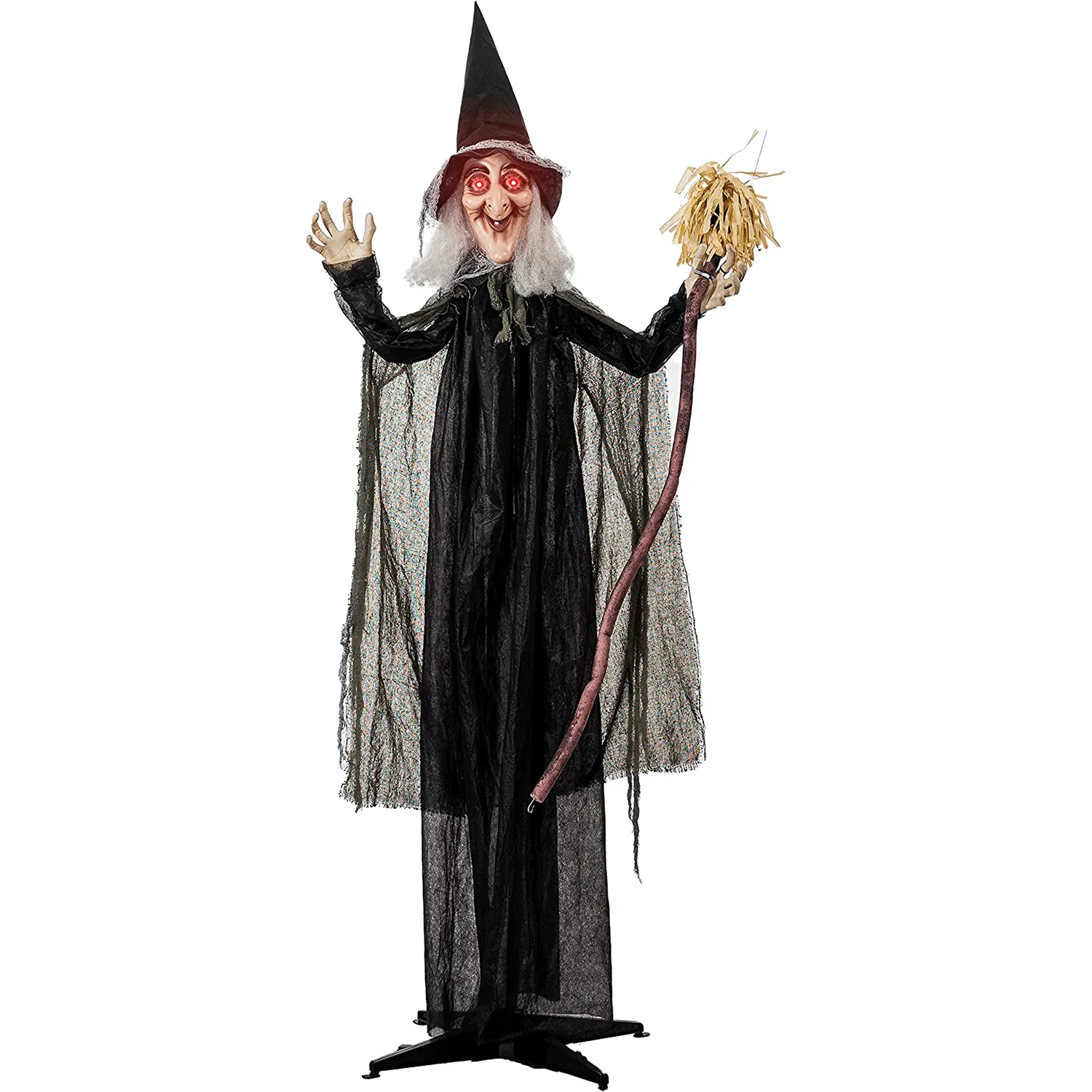 - Our scary witch decorations include a broom. It has flashing eyes and a loud noise activation creepy sound.