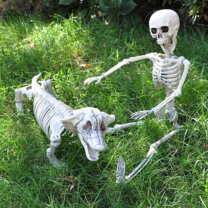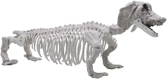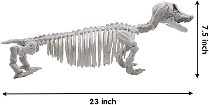 The skeleton dog decoration also allows your children to play with it indoors as well as outdoors and can act as a great toy for them to play with during the day or at night during Halloween time. This skeleton has been sculpted by hand, made to resemble the real thing. A super value pack (includes 1 Wiener Dog Skeleton only) at an affordable price, this set is sure to delight anyone who loves dogs and skeletons! This posable and realistic-looking skeleton looks like a real dog, with a moveable head and jaw. It features superior quality material for durability and long-term use for indoor/outdoor scenes and decoration, Halloween parties, props thematic parties, indoor or outdoor décor, and everyday play.